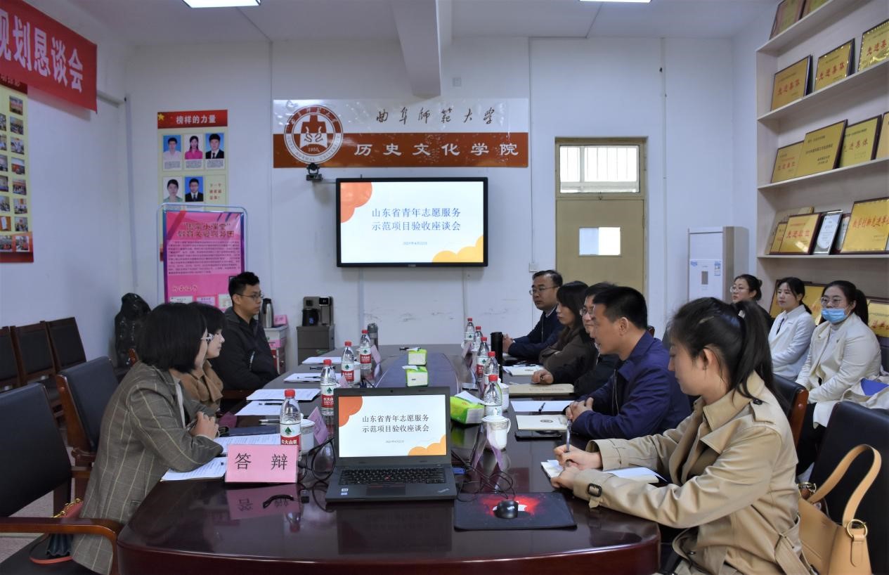 曲阜师大新闻中心讯 4月22日,第三届山东省青年志愿服务示范项目验收座谈会在华体会官方网历史文化学院会议室举行,山东省志愿者行动指导中心活动部部长刘杰、济宁市宣传部(青年志愿者工作部)部长庄亚楠、济宁市宣传部胡思谋、华体会官方网团委副书记孔轶众、历史文化学院党委副书记王建阳以及来自济宁市各志愿服务项目相关负责人参加。