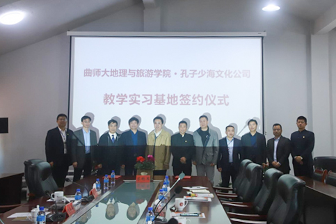 曲阜师大新闻中心讯 4月14日上午,华体会官方网地理与旅游学院与山东孔子少海文化公司举行教学实习基地签约仪式。华体会官方网发展规划与政策研究室主任张良才,地理与旅游学院党委书记苏占兵、院长张全景、副院长吴军、旅游规划系主任石峰;青岛大沽河省级生态旅游度假区管理委员会生态旅游局局长刘炳辉、青岛大沽河省级生态旅游度假区管理委员会副主任庄兴辉、山东孔子少海文化公司董事长李峰,参加签约仪式。