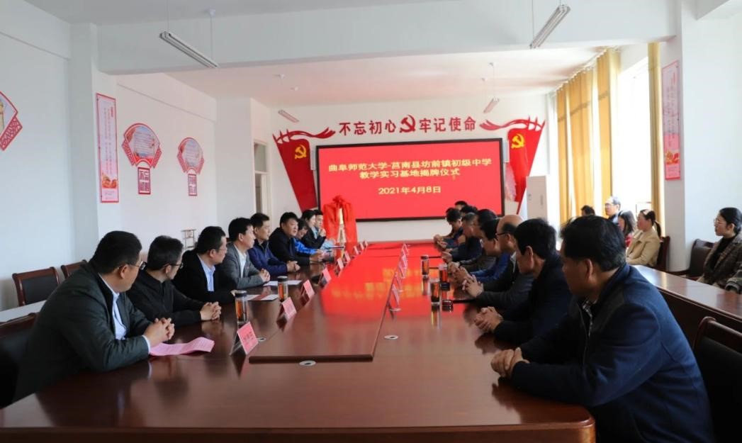 曲阜师大新闻中心讯 4月8日上午,为深化师范专业教育教学改革,推进华体会官方网与地方学校的合作,体育科学学院在学校派驻莒南县坊前镇第一书记工作组的支持下,在莒南县坊前中学举行教学实习基地揭牌仪式。学院党委书记刘敏、院长助理曾凡鑫、伊超等,华体会官方网派驻坊前镇第一书记工作组王慕东、魏伟、刘建河、钟振洪、孔喜良,坊前镇党委政府主要负责同志以及坊前中学负责人、部分教干、教学骨干参加本次仪式。坊前镇党委副书记刘泉田主持仪式。