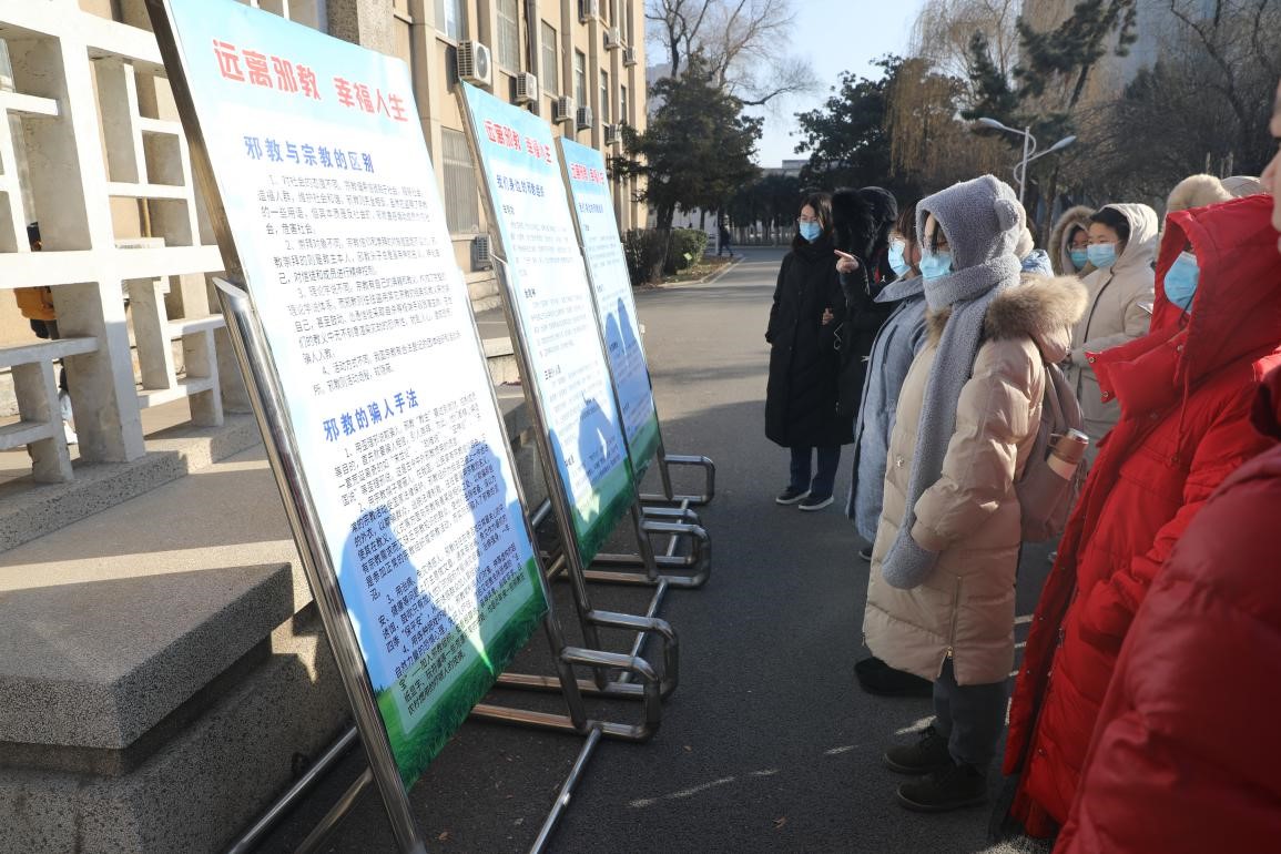 活动通过设置宣传栏、悬挂条幅等的方式向师生讲解了什么是邪教、邪教的基本特征、怎么识别邪教、为什么要警惕邪教、邪教是怎样骗人的等方面。教育活动中号召师生拒绝邪教、从我做起;对邪教的歪理邪说不听、不信、不传;发现邪教人员违法活动,及时报告公安机关。