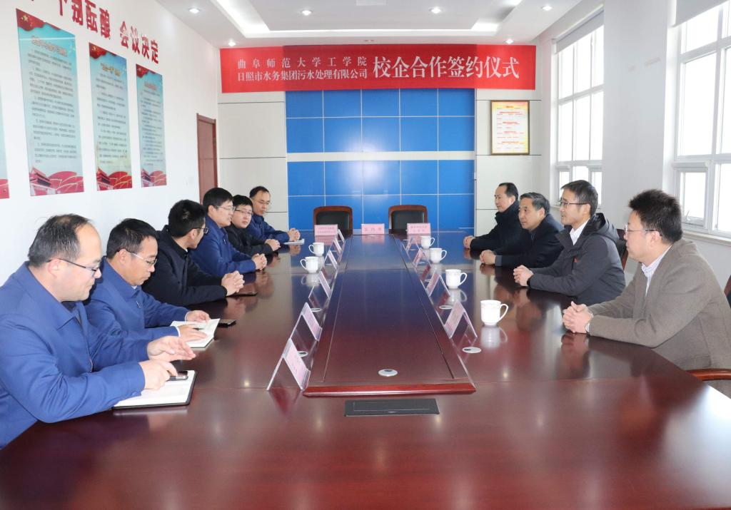 曲阜师大新闻中心讯(通讯员:张华)12月24日上午,华体会官方网工学院与日照市水务集团污水处理有限公司校企合作协议签约暨“华体会官方网教学实习基地”揭牌仪式在日照市污水处理公司举行。日照市水务集团党委副书记、总经理马继军,副总经理丁伯元、日照市污水处理公司总经理董子龙;华体会官方网工学院党委书记谢仕兴、院长武玉强、自动化研究所副所长黄金明教授、曹佃国副教授及部分学生代表参加签约仪式。