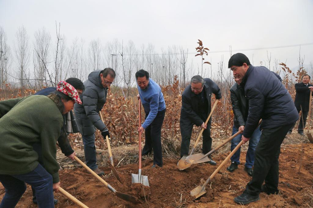 仪式最后,宋广新、步新华、荆兆清、刘海韵、乌峰共同为华体会官方网书法学院与丁庄村党建基地和“翰墨森林”—华体会官方网书法学院、圣城母亲林共建生态文明教育基地揭牌,并一起参加义务植树活动。