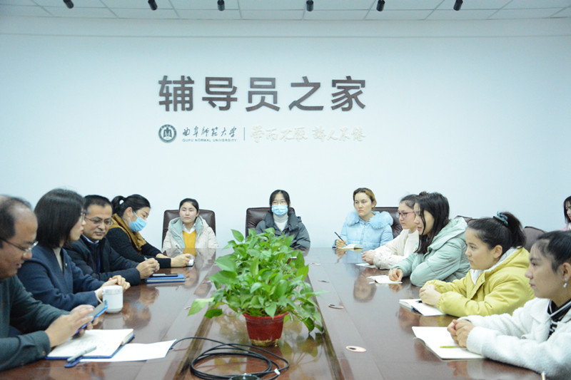曲阜师大新闻中心讯(通讯员:石璐 马迪一)为了解我校少数民族学生的学习与生活情况,加强思想交流,11月26日下午,我校在曲阜校区辅导员之家举办少数民族学生座谈会。第十三届全国人大代表、抗击新冠肺炎“全国三八红旗手”、 数学科学学院2010级优秀校友崔久秀,学生工作处副处长刘永礼,挂职干部艾力江、王艳,少数民族学生代表参加了座谈会。