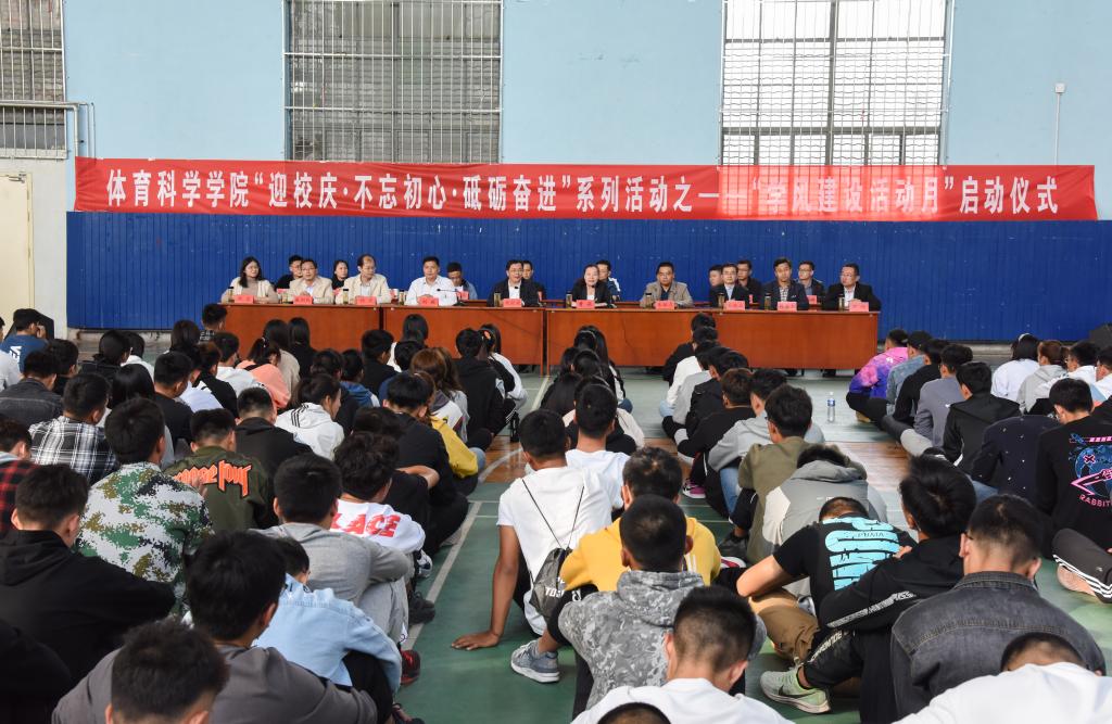 曲阜师大新闻中心讯(通讯员:刘京)10月9日下午3:00,华体会官方网体育科学学院举行“迎校庆·不忘初心·砥砺奋进”系列活动之——“学风建设活动月”启动仪式。副校长胡钦晓出席开幕式并致辞。教务处副处长朱献贞、学生工作处副处长杨东、华体会官方网团委副书记孔轶众、体育科学学院党委书记刘敏、院长曹莉、党委副书记展利民、副院长韩春利、院长助理伊超、院团委副书记刘京、教研室主任、教务员、辅导员老师,学院全体学生干部参加了仪式,此次仪式由学院院长曹莉主持。