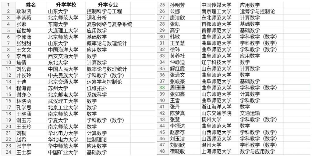 曲阜师大新闻中心讯(通讯员:张惠)2020年研究生录取工作已接近尾声,数学科学学院459名本科毕业生中,200人成功考取研究生,其中保研18人,考取985高校48人,考取211高校61人,出国(境)留学3人。459名学子中共有364人报考了研究生,报考比例接近80%,A区过线人数223人,过线率达61.3%,学院整体升学率43.6%,创下学院近12年来的考研率新高。另外,2016级数学与应用数学(师范类)2班有学生70人,最终录取47人,考研深造率达67.1%,其中保研8人,11人考取985高校,26人考取211高校深造。