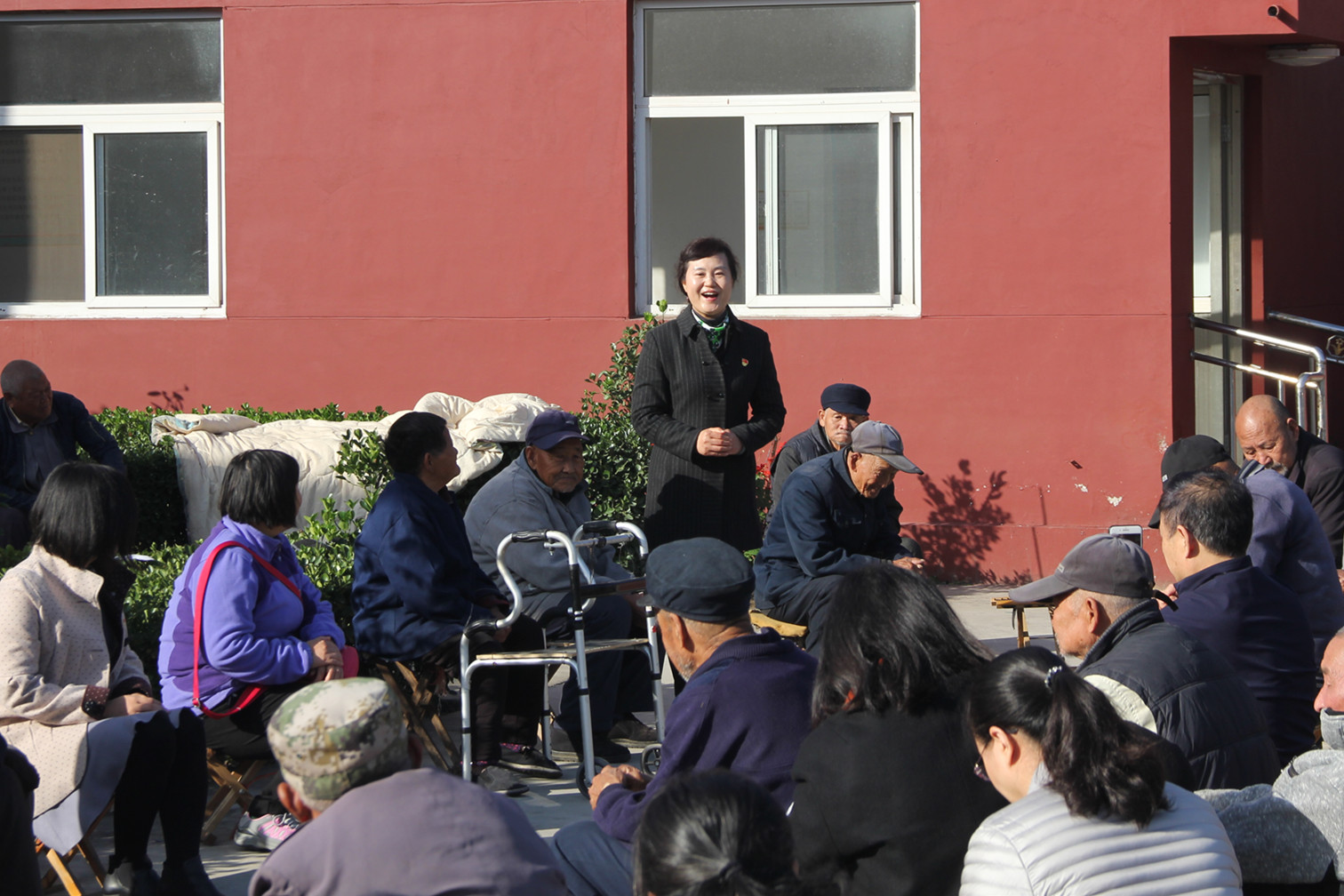 党员一行首先来到吴村镇敬老院开展爱老助老服务。现场,师生党员们为老人们打扫卫生,整理物品,陪他们聊天,拉家常。借老人在院子里晒太阳之际,学院党总支书记茌淑君即兴为大家献唱了几首耳熟能详的红色歌曲,为老人们带来了欢乐和笑声。