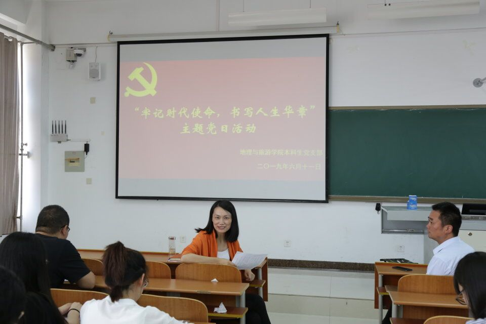 举行一次主题党日活动:6月5日、11日,地理与旅游学院研究生党支部、本科生党支部分别举行“牢记时代使命,书写人生华章”主题党日活动。党委书记苏占兵、副书记刘伟以普通党员身份参加活动。