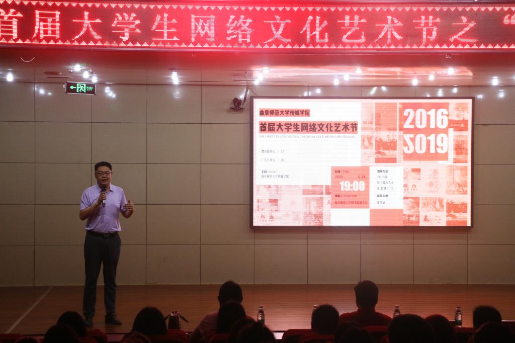6月14日晚,我校传媒学院顺利举办了首届主题为“流光六月,微影展扬”的大学生网络文化艺术节微电影展。传媒学院党委书记王宏杰、团委书记张守荣,专业教师董丛斌、裴令华、赵鑫以及山东侠之少年数字娱乐技术有限公司总经理刘凯邦先生出席本次活动。传媒学院2017级全体学生参加了活动。