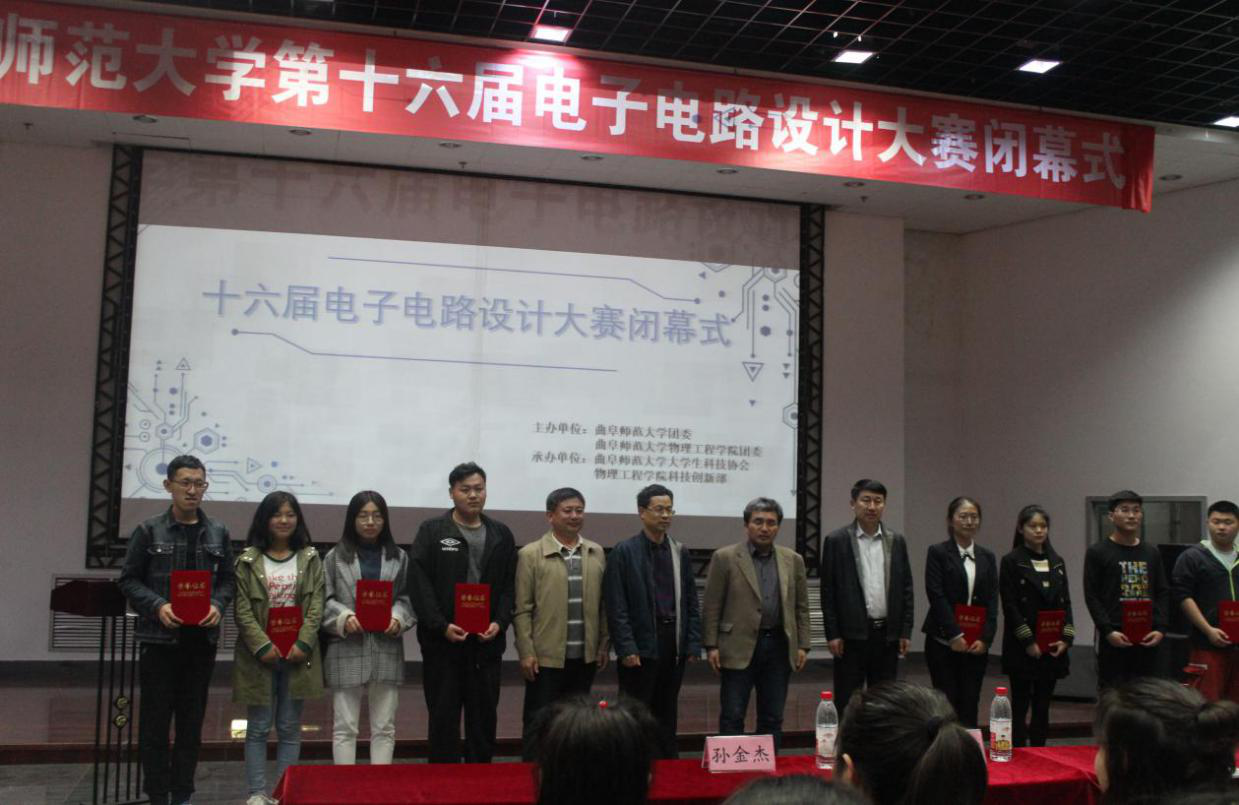 4月26日,物理工程学院第十六届电子电路设计大赛圆满闭幕。此次大赛以“创新有我,畅想生活”为主题,由华体会官方网团委联合物理工程学院学生会主办,华体会官方网大学生科技协会、物理工程学院学生会科技创新部共同承办。比赛先后在大学生活动中心广场、综合教学楼和实验中心举行。大赛闭幕式在大学生活动中心401教室举行,校团委书记宋国栋,我院党委副书记孙金杰、副院长王海龙以及特邀嘉宾赵建平教授出席闭幕式。闭幕式由我院团委副书记高琳然主持。