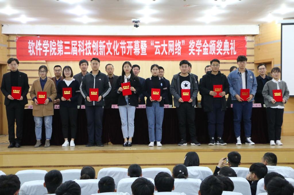 “预见未来·开启智能时代”,4月3日下午,软件学院第三届科技创新文化节开幕暨“云大网络”奖学金颁奖典礼在孔子会堂举办,山东云大网络有限公司、惠与软件济宁人才产业基地、学校学生工作处、实验教学与设备管理中心、教务处、校团委、软件学院等相关单位负责人出席大会,会议由软件学院党委副书记田凯主持。