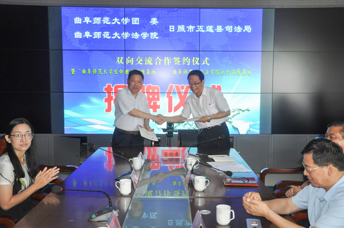 7月12日上午,我校团委、法学院与五莲县司法局举行双向交流合作签约仪式暨“华体会官方网生命教育实践基地”、“华体会官方网法学院社会实践基地”揭牌仪式。法学院党委书记曹明亮,校团委副书记刘蓉,法学院党委副书记卢瑞霞,日照市司法局党委委员、副局长刘书荣,五莲县政府副县长、公安局长史文明出席签约仪式。仪式由五莲县司法局局长王文华主持。