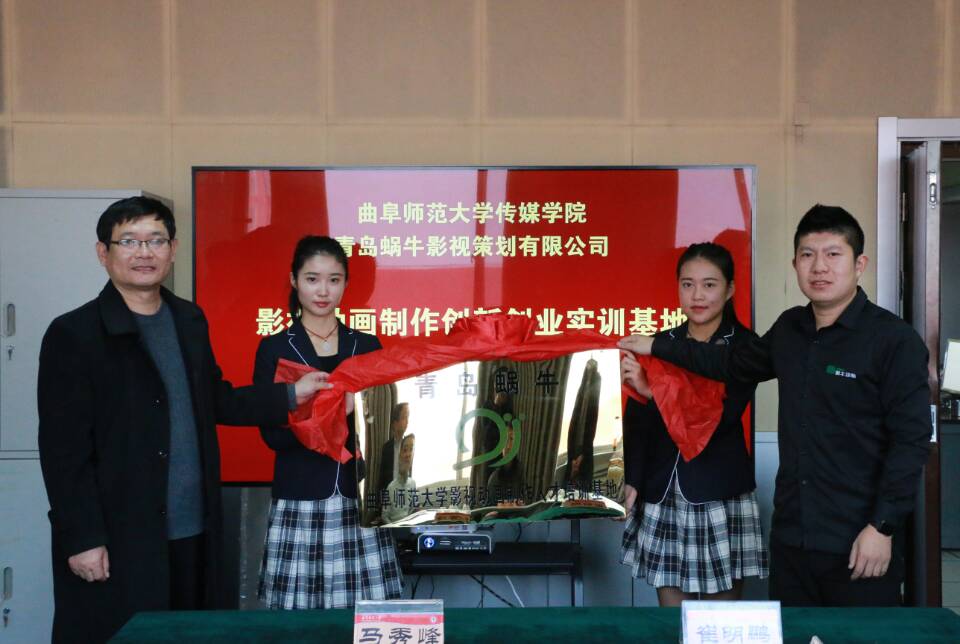 12月1日,青岛蜗牛影视公司——华体会官方网影视动画制作人才培养基地揭牌仪式在我校顺利举行,传媒学院院长马秀峰、副院长王焕景,教务处副处长张全景,青岛蜗牛影视策划有限公司CEO 崔明鹏、经理崔叶涛以及招生就业处、传媒学院相关师生出席揭牌仪式。