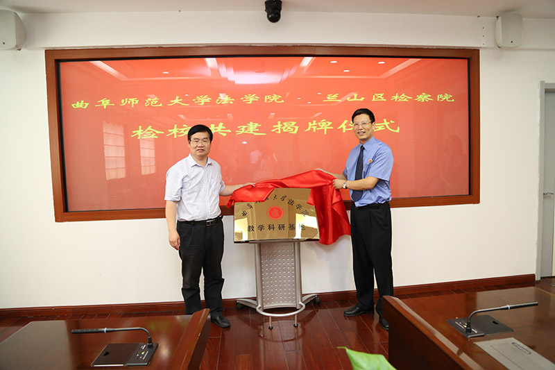 7月6日上午,我校法学院教学科研基地揭牌仪式暨兼职教授聘任仪式在临沂市兰山区人民检察院举行。我校日照校区管委会主任助理、校区管理办公室主任池福安,临沂市兰山区人民检察院苏波检察长,我校法学院院长袁兆春教授、副院长张益刚教授、法学院党委副书记卢瑞霞及临沂市兰山区人民检察院党组成员出席仪式。