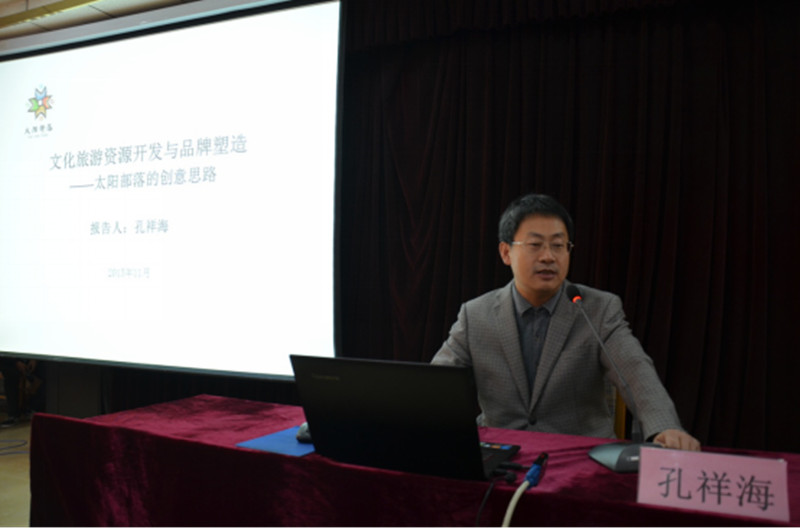11月2日上午,山东龙岳创业投资有限公司、山东省文化产业示范基地泰安太阳部落旅游区总经理孔祥海兼职教授聘任仪式暨学术报告会在我校举行。仪式上,孔祥海先生接受了我校兼职教授聘书,并做了题为“文化旅游资源开发与品牌塑造”的学术报告。历史文化学院负责人、教师代表以及文化产业管理、文物与博物学、国学、国际政治等专业本科生近200人参加会议。
