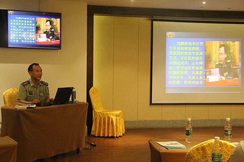 济南军区学生军训教研室主任田崇杰发言,他强调在新形势下,我们应该进一步推动《普通高等学校军事课教学大纲》的贯彻落实,提高军事理论教师的业务素质,积极推动我省高校军事理论课教学工作广泛深入开展。他肯定了我校近年来军事理论课程教学取得的成绩,希望我省各大高等院校老师能够在本次培训过程中相互交流,相互学习,使我省的军事理论教育工作再上新台阶。