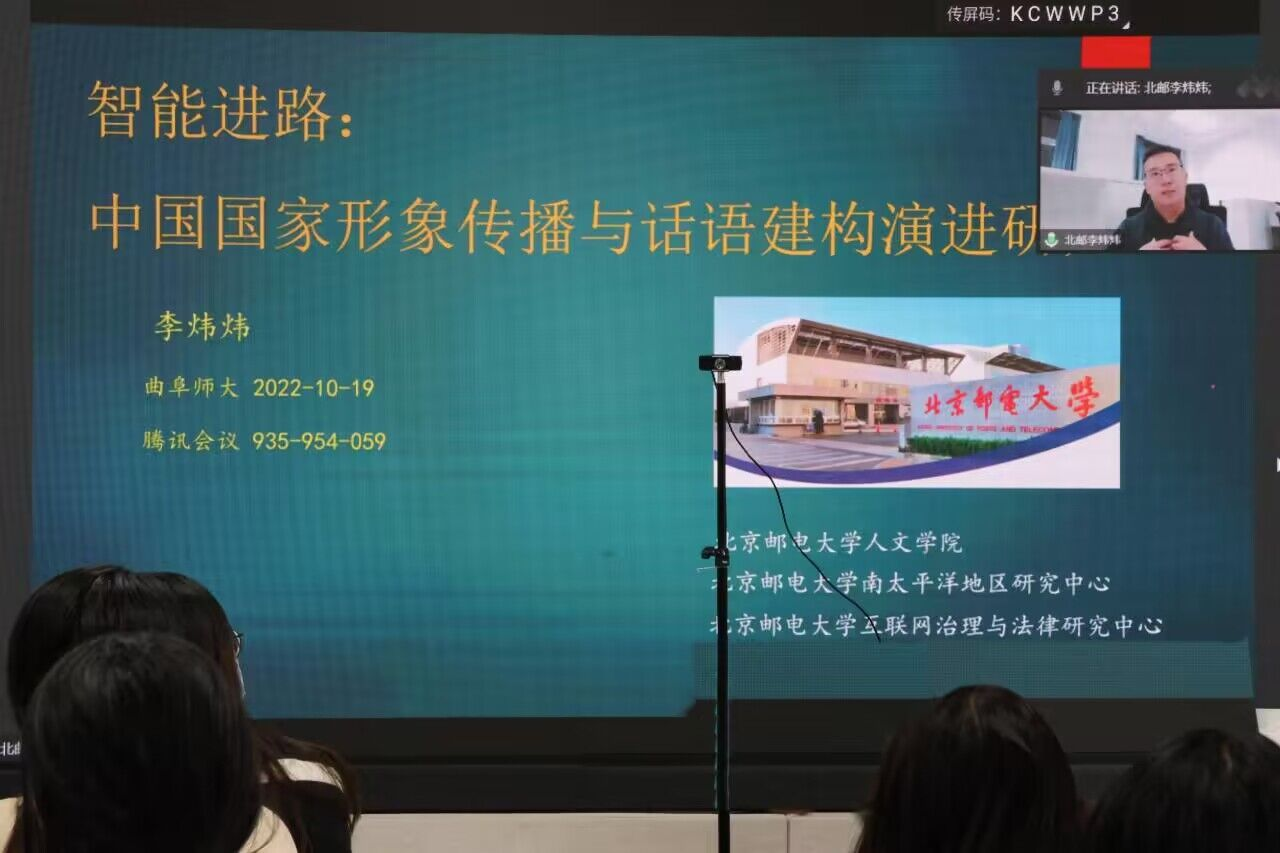 曲阜师大传媒学院讯 聚焦国际传播议题,立足新传前瞻视野,为开拓传媒学子在国际传播方向的视野,华体会官方网传媒学院于本学期举办新闻传播青年学者系列讲座第二季,讲座继续延用线上线下结合的形式,邀请了南开大学、北京邮电大学、杭州电子科技大学、外交学院等高校的青年学者,围绕计算传播学的国际传播研究、中国国家形象传播与话语构建演进、国际传播的媒介素养和中国学术旅居者跨文化适应等专题,与相关专业师生进行学术前沿研究分享。传媒学院副院长刘波出席讲堂活动,学院新闻传播系副主任孙浩主持讲堂,与各主讲学者进行学术互动。