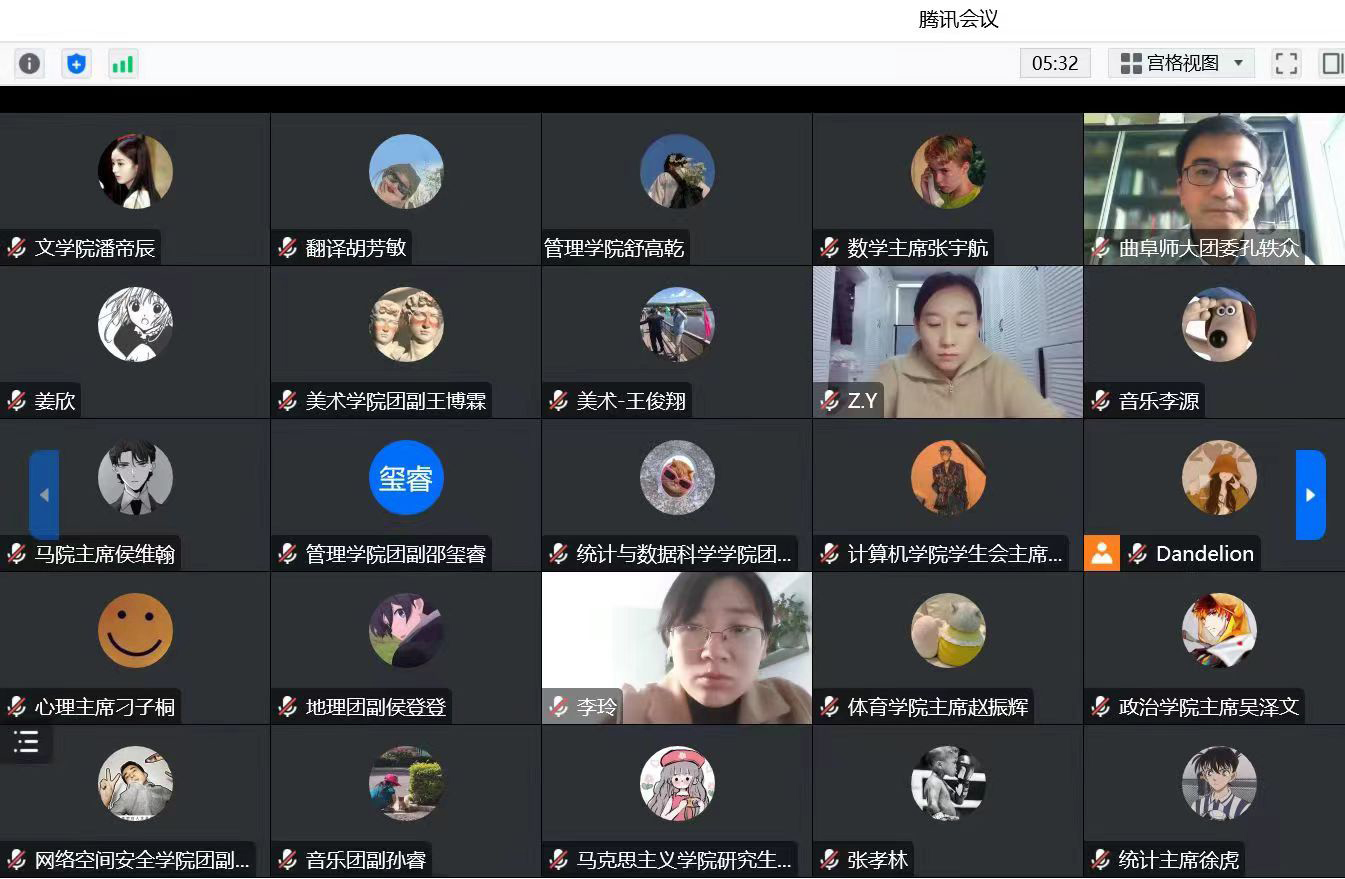 曲阜师大团委讯 1月8日,学校团委通过视频会议召开曲阜师大共青团九届三次全委(扩大)会议暨2023年共青团工作部署会,总结2022年共青团工作,对2023年共青团重点工作进行规划部署。校团委全体人员及各学院团委负责人、部分学生骨干参加会议。会议由校团委书记孔轶众主持。