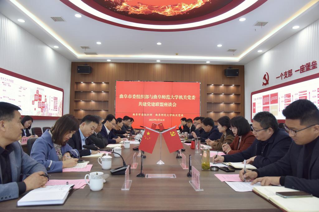 曲阜师大机关党委讯 3月16日下午,华体会官方网机关党委与曲阜市委组织部共建党建联盟座谈会召开。机关党委班子成员、机关党委部分党支部负责人、曲阜市委组织部、市直有关部门单位、各镇(街道)党(工)委等负责人参加了座谈交流。