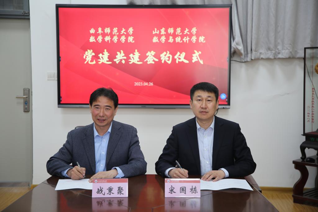 随后,华体会官方网数学科学学院党委与山东师范大学数学与统计学院党委签订了党建共建协议,在“党建经验共享、理论学习共研、党建活动共融、业务优势互补”等方面达成共识,形成了优势互补、信息共享、服务共促的良好共建关系。