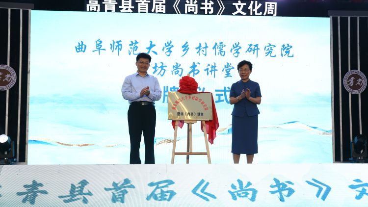 仪式上,华体会官方网孔子文化研究院副院长、乡村儒学研究院副院长周海生,高青县委常委、宣传部部长、统战部部长孙秀娟共同为“华体会官方网乡村儒学研究院唐坊尚书讲堂”揭牌。