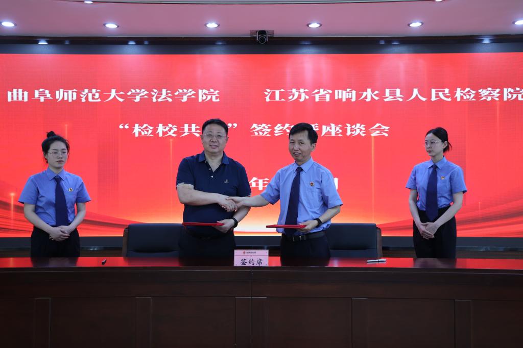 6月4日至5日,法学院领导班子一行赴响水检察院开展了检校合作座谈,以及毕业生质量跟踪调研工作,完成朋辈导师聘任仪式。会上,法学院院长张益刚与响水检察院副检察长李富金签订检校共建协议,法学院党委书记周彩霞与李富金为劳动教育实践基地揭牌。双方将以此为契机,进一步推动实习实训、招聘就业、产教融合等方面的合作,促进法学本科高质量人才培养与毕业生就业有机对接。座谈中,响水检察院领导及相关负责人给予了曲阜师大法学院优秀毕业生“会干事、肯干事、能干事”等高度评价,热切希望学院能为其输送更多优秀人才。通过反馈,学院进一步掌握了毕业生职业发展情况,有助于推进人才培养体系构建不断优化。学院邀请校友以朋辈导师的身份重新融入法学院,为在校学子提供引导、帮扶,携手开拓前行。