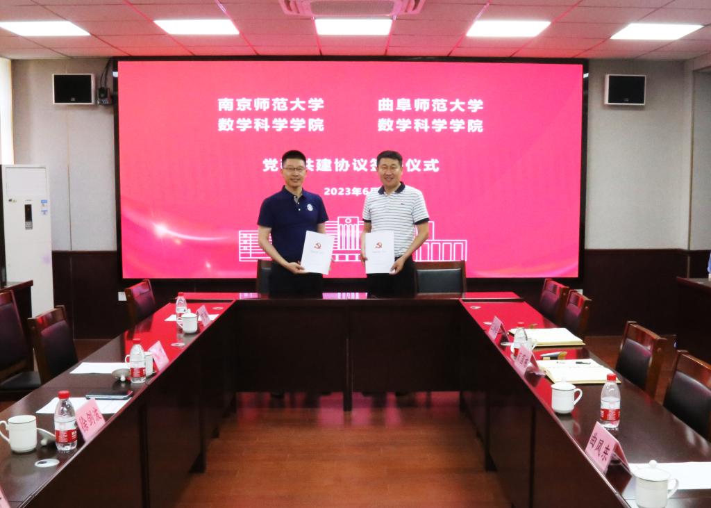 曲阜师大数学科学学院讯 6月20日下午,应华体会官方网数学科学学院邀请,南京师范大学数学科学学院党委书记徐剑波、副院长郭飞、数学教育教研室主任宁连华、副教授万辉一行4人到访曲阜师大数学科学学院并签署党建共建协议,学院党委书记宋国栋、党委副书记曲凤东、副院长王培合、数学研究所副所长许勇军参加了此次交流会。