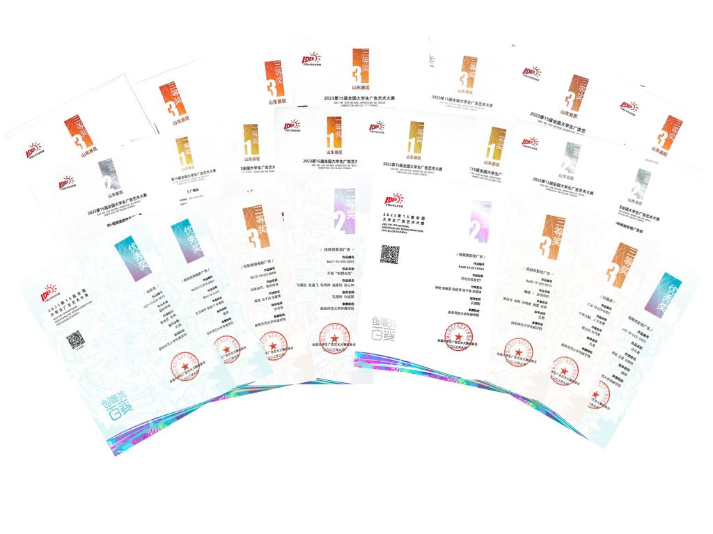 传媒学院讯  近日,第15届“中国大学生好创意”全国大学生广告艺术大赛全国总评审结果揭晓。曲阜师大传媒学子在比赛中获全国奖38项,其中二等奖3项,三等奖9项,优秀奖26项;在本届比赛的山东赛区评审中,获一等奖5项,二等奖15项,三等奖25项,优秀奖88项;获奖作品涵盖微电影、动画、平面广告等不同种类,传媒学子参赛人数和获奖率再创新高,获奖等级及国家级获奖数量在全省近百家参赛高校中稳居前列。