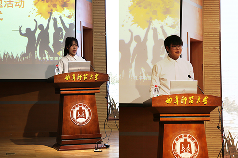 曲阜师大数学科学学院讯 为进一步加强学风建设,开创学院学风建设工作新局面,数学科学学院于11月12日举办了学风建设主题活动启动仪式,数学科学学院党委书记宋国栋,学生工作处副处长田凯,孔子教育基金会副秘书长晏逾,数学科学学院副院长王培合,校团委副书记李玲,数学科学学院1999届校友、兖州区实验高级中学副校长耿丽丽出席仪式。启动仪式由数学科学学院党委副书记曲凤东主持。
