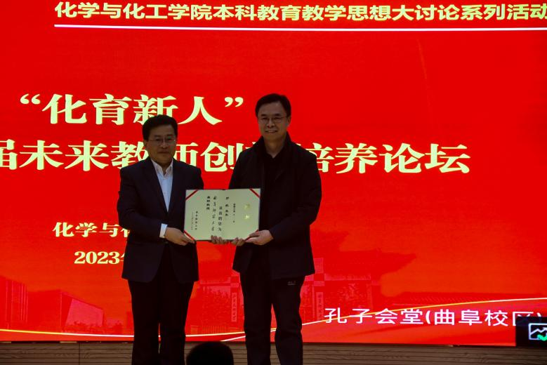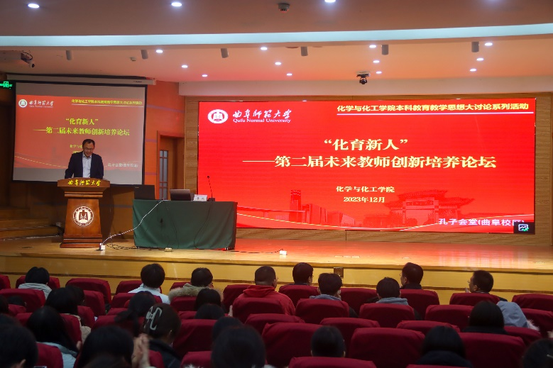 曲阜师大化学与化工学院讯 为推动本科教育教学改革,提高师范生教育教学能力,12月27日下午,华体会官方网化学与化工学院“化育新人”第二届未来教师创新培养论坛召开。山东省日照实验高级中学校长厉凯、山东省日照市教育科学研究院高中化学教研员兼任日照实验高中首席化学老师赵锋应邀参加论坛,论坛由化学与化工学院副院长刘鹏主持。