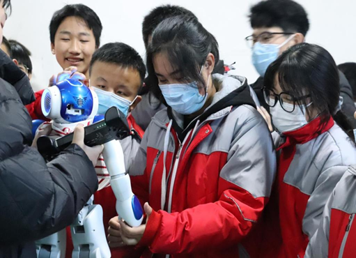 来访师生参观了日月广场、孔子像等校园文化地标,感受到了曲园浓厚的学习氛围。随后,师生们来到工学院智慧康复、数控加工流水线实验室,观赏了机器狗和机器人的舞蹈表演。在参观过程中,学生们坐上了以模拟游戏为原理的康复座椅,亲身体验了科技与生活交融的智慧力量;通过与机器人的语音交流,学生们更加领悟到了日新月异的时代中科技创新的魅力,在心底埋下了科创兴国的种子。