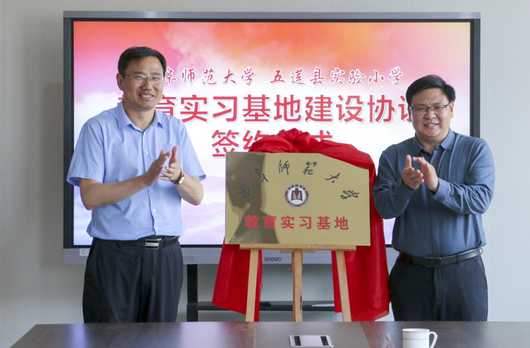 张明洁分别与济宁一中任城校区执行校长房晓辉、五莲县实验小学校长陈祥权、五莲中学校长魏本福签订“华体会官方网学生实习基地”协议。张明洁、李光顺与各学校校长共同为基地揭牌。