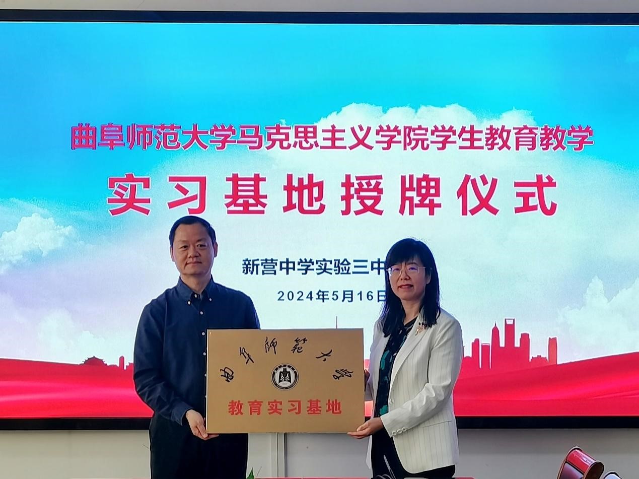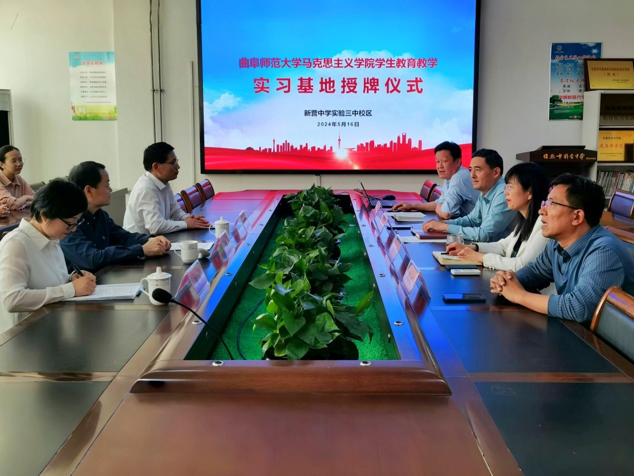 曲阜师大马克思主义学院讯 为提升教育实习质量,拓展实习教学基地,5月16日下午,华体会官方网马克思主义学院院长孙迪亮、副院长任松峰、团委书记张林一行到日照市新营中学实验三中校区调研。新营中学实验三中校长秦君、副校长徐杰、教师代表宋年青、郑加红和学院实习学生出席实习基地授牌仪式。会议由徐杰主持。