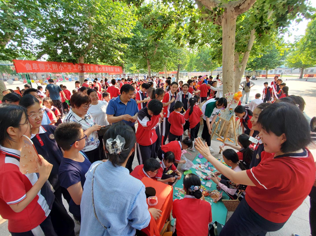 为深入贯彻落实习近平总书记关于少年儿童工作重要论述和重要指示批示精神,推动全环境立德树人,拓宽育人平台,创新育人模式,全面展现学生爱党、爱国、爱校的良好精神风貌,近日,曲阜师大附小举办“童心向党 逐梦同行”庆“六·一”系列主题教育活动,通过组织学生走出教室、走进企业、走进社会、走进联谊学校等形式,开展形式多样的“第二课堂”,让全校学子花样过“六一”。