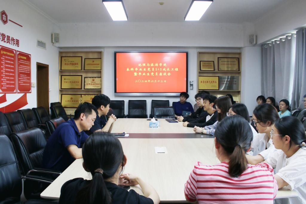 曲阜师大地理与旅游学院讯  为深入贯彻“学纪、知纪、明纪、守纪”的要求,教育引导毕业生党员坚持不懈用习近平新时代中国特色社会主义思想武装头脑,6月13日,地理与旅游学院组织召开2024届研究生、本科生毕业党员座谈会。学院党委书记苏占兵主持,学院党委副书记刘伟、副院长于伟、辅导员赵岩以及全体毕业生党员参加。