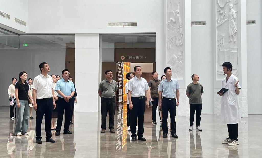 孙迪亮一行首先参观了江苏护理职业学院的智慧医护实训中心,体验了思政课虚拟仿真实践教学。