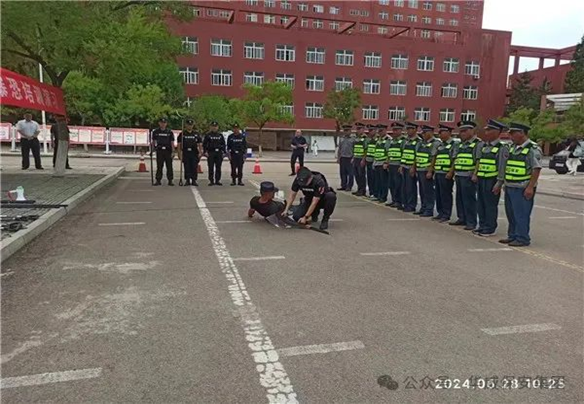 本次演练主要对保安队伍进行反恐作战单元培训,特巡警三中队李洋对涉恐战略战术进行细致讲解,随后对三人作战小组成员间协调配合,防爆盾牌、抓捕器、钢叉等安保器材使用、控制暴徒及制服方法进行了重点辅导。