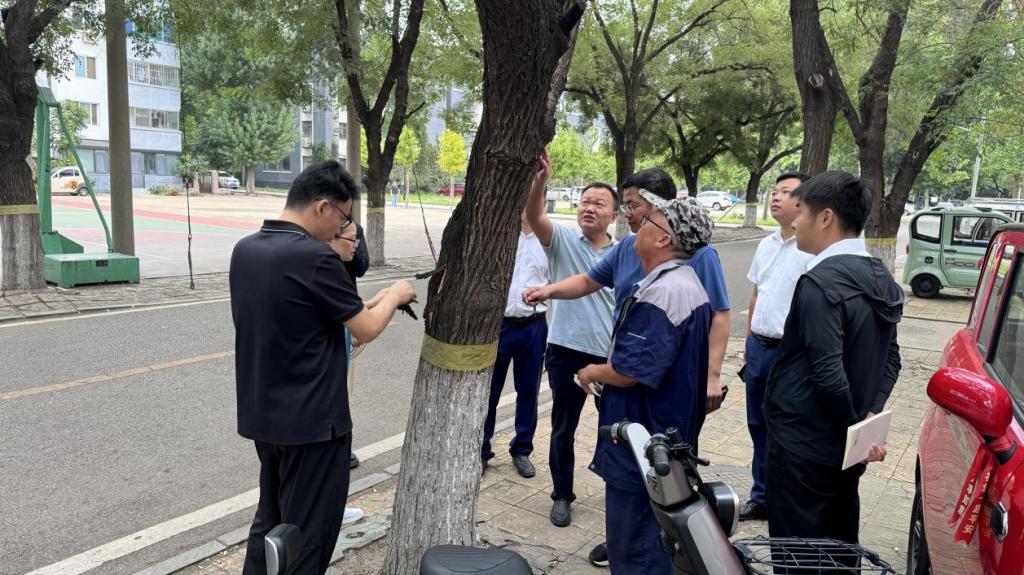活动现场,专家团队充分发挥其丰富的理论与实践经验,对校园内的柏树、国槐、杜仲、柳树、樱花树、乌桕、法桐、玉兰、楷树、杉树等10余种苗木及园区部分区域草坪枯死情况等进行精准把脉。从根系枝杆检查到枝叶修剪养护,从病虫害防治到营养补充,逐一进行原因分析,开出诊断药方,确保每一棵树都能得到“靶向治疗”。