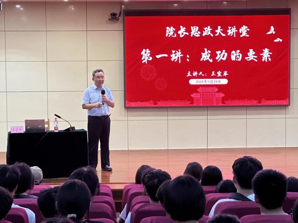 曲阜师大管理学院讯    9月18日,管理学院新生思政大讲堂举办,此次报告的主题为《成功的要素》。2024级新生齐聚一堂,共同聆听管理学院院长王宜举教授对成功要素的深刻解读。学院副书记刘洪铎主持本次报告会。