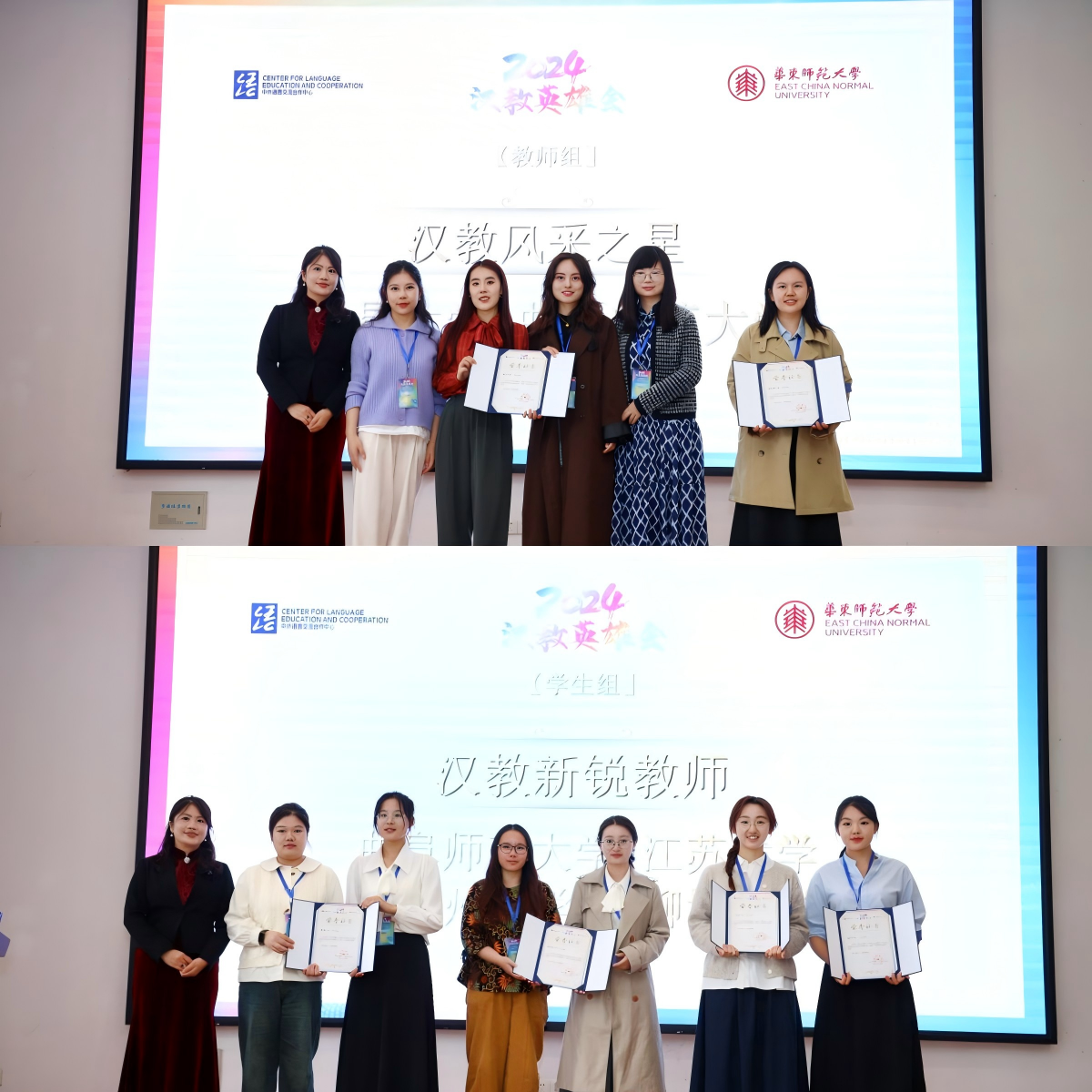 曲阜师大文学院讯   10月20日,由教育部中外语言交流合作中心、全国国际中文教育专业学位研究生教育指导委员会联合主办,华东师范大学承办的2024年“汉教英雄会”华东片区国际中文教学技能交流活动落下帷幕,曲阜师大文学院秦海燕、姚瑞老师和国际教育学院王晓霞老师组成的教师团队,获得“汉教风采之星”称号;杨新刚老师指导的博士研究生赵亚男、本科生陈明月、留学生张秀珍(印度尼西亚)组成的学生团队获得“汉教新锐教师”称号。此次交流活动共有来自上海、江苏、浙江、山东、安徽、江西、福建七个省市22所高校的7支教师团队和20支学生团队参与。