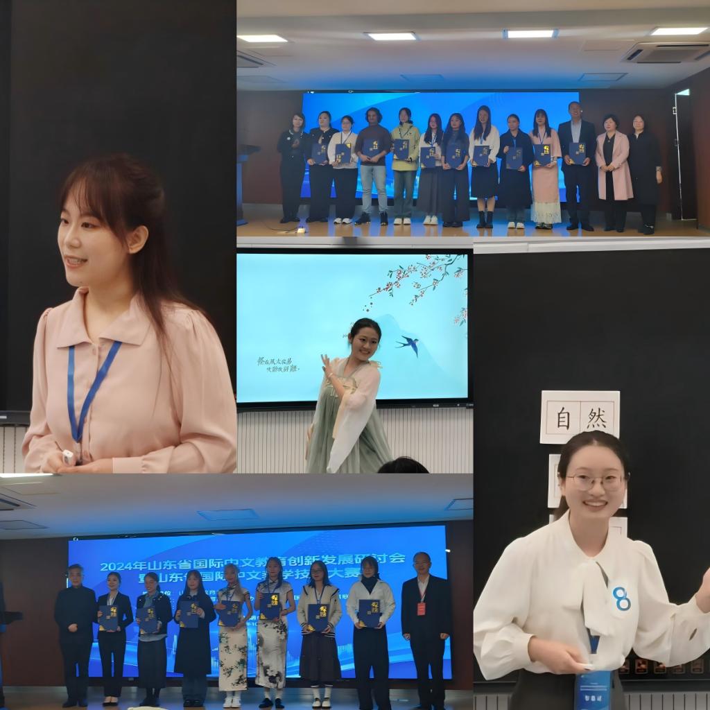10月27日,在山东省国际中文教育创新发展研讨会暨山东省国际中文教学技能大赛决赛中,翟潞含、王晓蕊、丁雪组成的研究生团队荣获一等奖陈明月、韩奕晨、石宜灵组成的本科生团队荣获三等奖。该项赛事由教育部中外语言交流合作中心和山东省教育厅指导,山东省教育国际交流协会和山东省国际中文教育联盟主办,鲁东大学承办,全省29支团队的76名优秀代表入围决赛