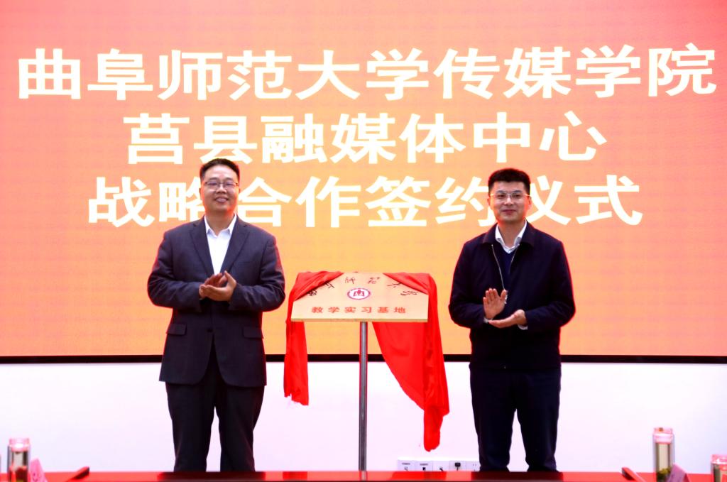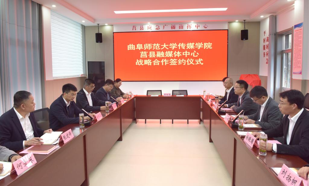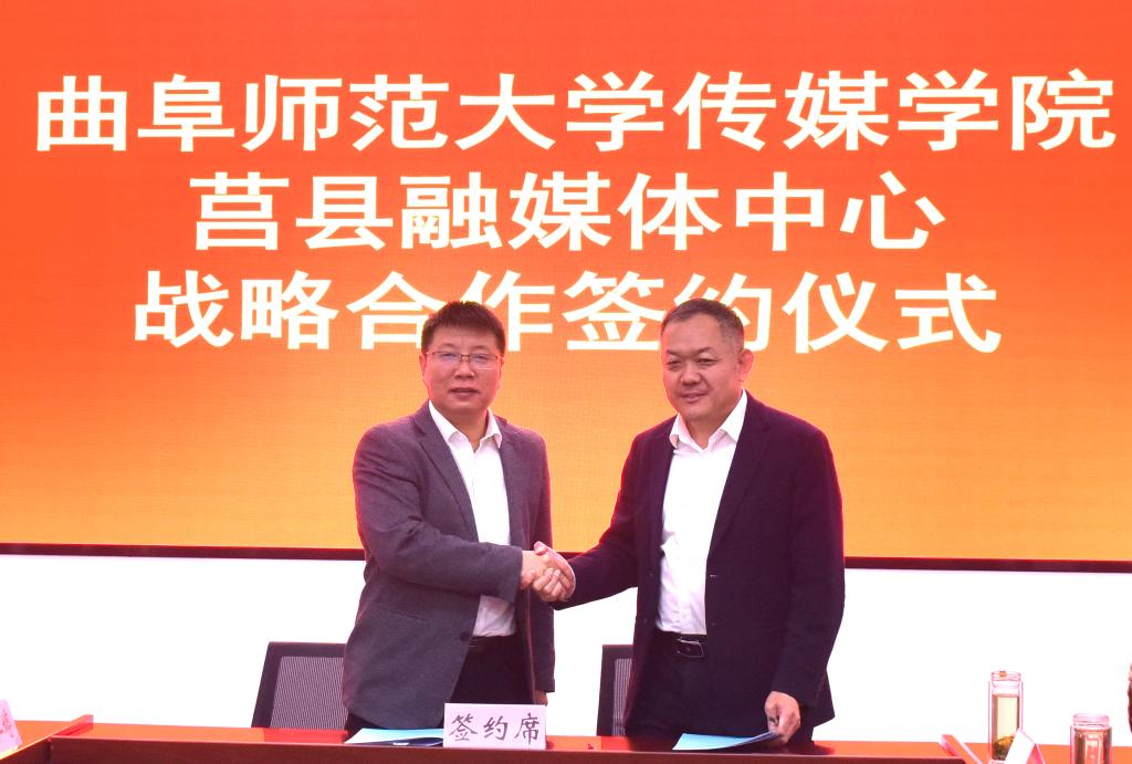 曲阜师大传媒学院讯 11月1日,华体会官方网传媒学院与莒县融媒体中心战略合作签约仪式在莒县融媒体中心举行。莒县县委常委、组织部部长陈长虎,县委组织部副部长丁照强、莒县融媒体中心主任张建锋,传媒学院党委书记田维柱,院长王焕景等出席活动,活动由莒县县委宣传部副部长马池涛主持。