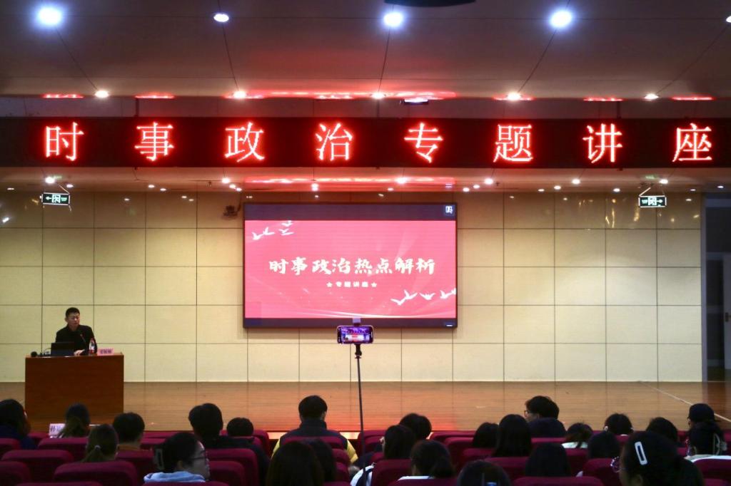 曲阜师大马克思主义学院讯 为提升学生对时事政治的关注度和理解力,促使思政教育融入学生日常,11月26日,马克思主义学院于日照校区图书馆报告厅、曲阜校区东辅楼报告厅以线上线下相结合的方式举办时事政治专题讲座。特邀毕业于武汉大学马克思主义学院博士、全球职业规划师常成主讲,学院党委副书记姜振栋主持,两校区2021级本科生积极参加。