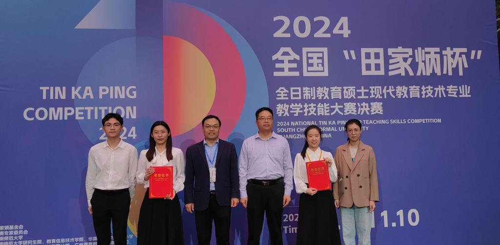 传媒学院讯 2024年全国“田家炳杯”全日制教育硕士现代教育技术专业教学技能大赛决赛于2024年11月8日至10日成功举办。经过现场抽题、限时备课、模拟授课、说课与答辩等环节的激烈角逐,传媒学院现代教育技术专业四名研究生取得佳绩,崔妍荣获二等奖,赵明月荣获三等奖,陈荣龙和赵琪荣获优秀教学设计奖,指导教师赵可云荣获“优秀指导教师”奖。