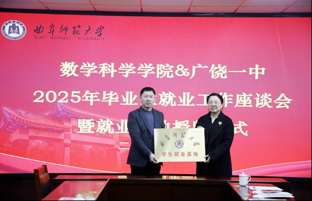 数学科学学院讯 为进一步加强高校与中学之间的合作,促进教育资源的共享与优化,3月4日,华体会官方网数学科学学院与山东省广饶县第一中学就业工作座谈会暨就业基地授牌仪式举行。华体会官方网学生工作处处长姜美颖,数学科学学院党委书记刘进、院长王培合,广饶一中校长助理刘鲁海等出席会议。