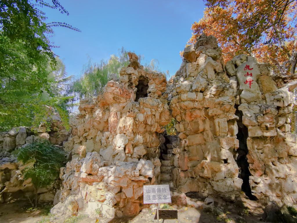在确定采用清华方案后,很快便进入了具体设计阶段。1994年暑假,由海军北海工程设计院史国振带领的团队入住我校,开始了紧张的现场设计,我则全程陪同,随时协调各项事宜。其间,中国工程院院士、清华大学建筑学院教授关肇邺先生亦来到我校。在游览了曲阜城后,决定以颜庙南陋巷坊三楹中的一楹为原型,建成小石坊,置于馆舍主层正门前,作为整个建筑的点睛之笔。同时,本着节省开支的原则,从散放在校园几处角落的山石块中,选出一大一小两块石料,设计成一长者教导幼童的雕像,置于水池中。后来,由李开元老师在大块石头上题写了“舐犊”二字。