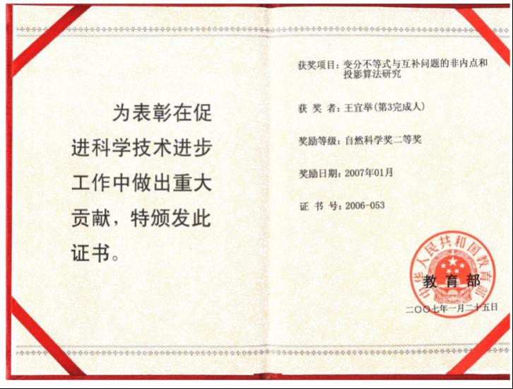 王宜举,享受国务院特殊津贴专家,山东省优秀科技工作者,教授,博士生导师,管理学院院长,华体会官方网“数学”一级学科博士点和山东省“十四五”数学优势特色学科方向带头人。主要从事最优化研究,在SIAM J Matrix Anal Appl、Math Programming、IEEE Trans Signal Processing、J Optim Theory Appl等学术期刊发表学术论文80多篇。主持完成4项国家自然科学基金和7项省部级课题。3次获教育部和山东省自然科学二等奖,2次获山东省自然科学三等奖。在科学出版社出版研究生教材《非线性最优化理论与方法》一部。先后被重庆大学、国防科技大学、北京交通大学、海南大学和重庆师范大学聘为主讲教师,为该校的研究生和博士生讲授《最优化理论与方法》。多次到香港城市大学、香港理工大学和澳大利亚的科廷大学进行学术访问和交流。现为国际优化学术期刊Asia Pacific Journal of Operational Research编委。