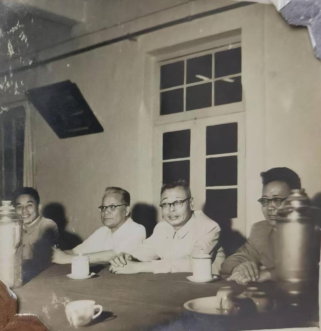 省领导与华罗庚先生讨论研究召开“全国运筹学现场会议”(右一为华罗庚)