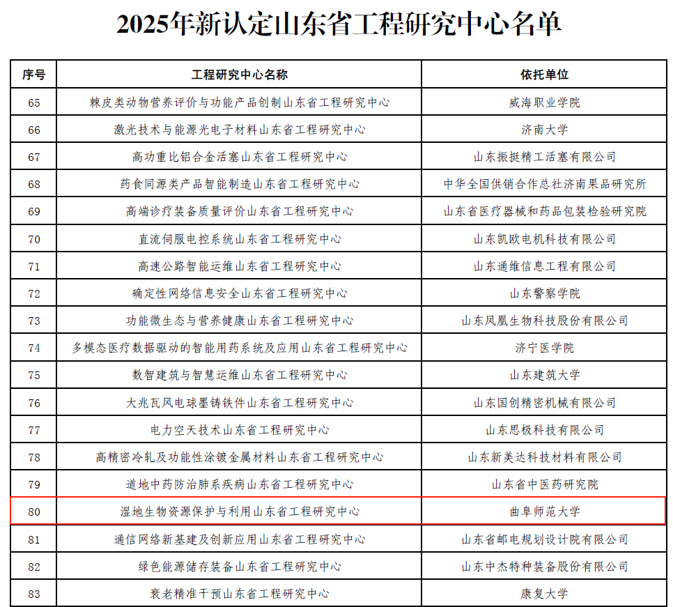 生命科学学院讯 近日,山东省发展和改革委员会发布《关于公布2025年新认定及全部山东省工程研究中心名单的通知》(鲁发改高技〔2025〕575号),依托华体会官方网生命科学学院建设的“湿地生物资源保护与利用山东省工程研究中心”成功获批。该中心是学校2025年度唯一获批的省级工程研究中心,也是生命科学学院在省级科研平台建设的又一重大突破。