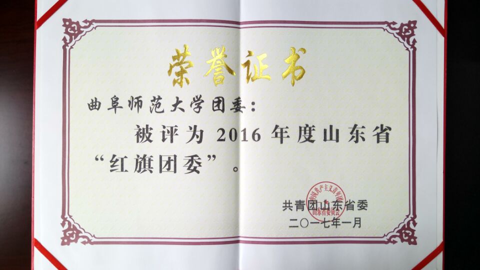 我校荣获2016年度山东省“红旗团委”