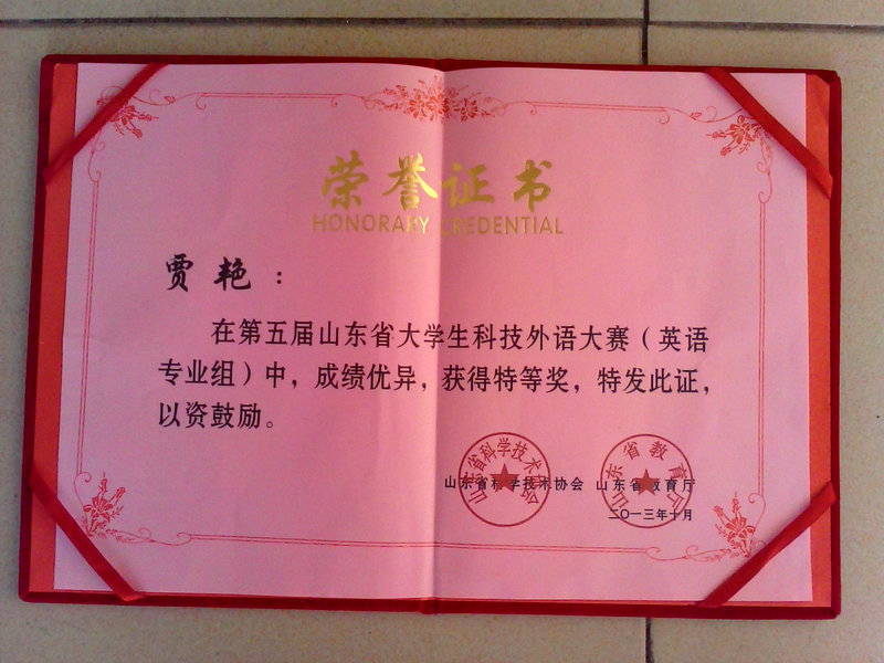 我校学子在第五届山东省大学生科技外语大赛中喜获佳绩